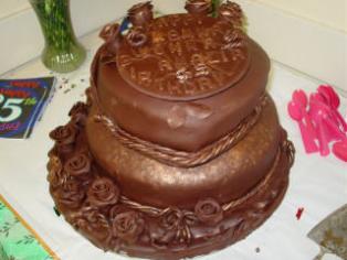 Mom's Birthday - 85 chocolate cake chocolate fondant chocolate roses pure white buttercream 14" round - 12" heart