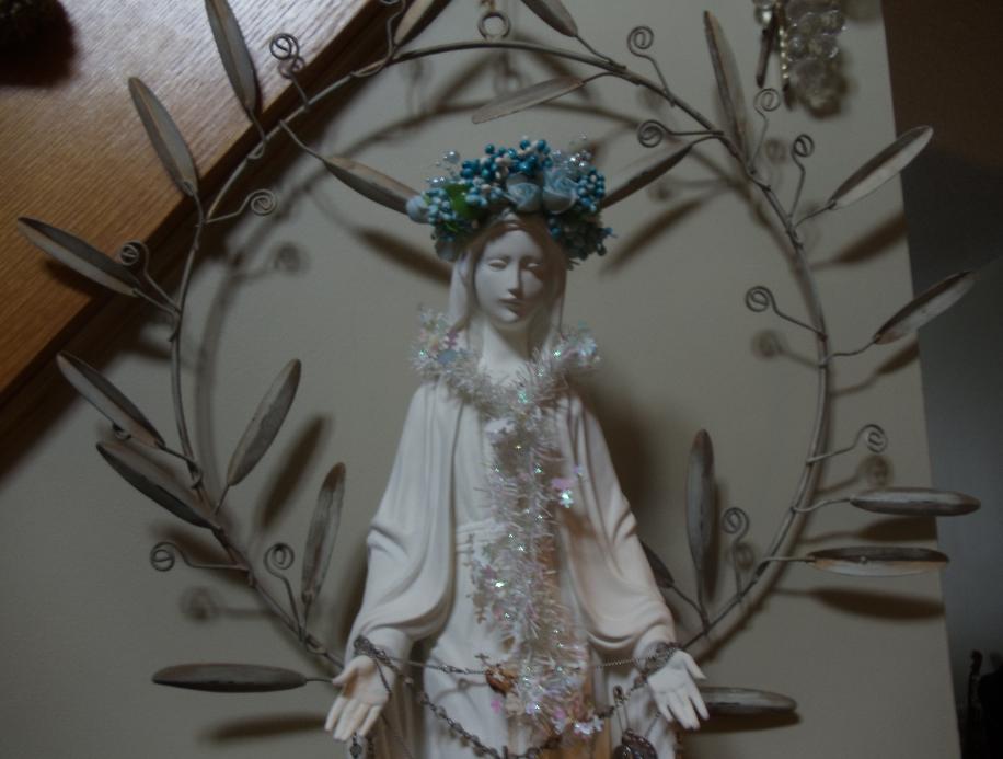 Shadows of Deceased Family Members Behind the Statue of the Immaculate Conception at Home