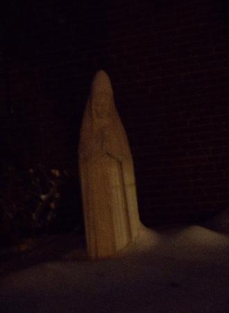 | After the Saturday night Mass on February 9th, and as I was leaving by the Office exit, a woman coming across the driveway from a side exit, excitedly approached me as I passed and asked if I had seen Mary's Statue and I followed her gaze and there in the shadowy corner of the Church was Mary's white marble statue wearing a brand new snow crown. Our laughter of delight drew others to look as they passed and then I too continued to go home. But in my mind, I knew Mary would want me to take a picture of Her new crown of snow -following the contours of the statue so precisely, so I turned around and took the 6 pictures. The time was about 6:15pm. After taking the first 3 pictures, our Pastor, Fr. Liborio Amaral came out to bless a car waiting in the driveway. It was this car that had its headlights shining on the statue so I could take these pictures. (This is the same Mother Mary as the Medjugorje Mary. See: http://www.medjugorjetoday.tv/8942/mirjana-pleaded-prayers-for-the-pope/) The next day, Sunday the 10th of February, I was sharing the photo of Mary's Snow Crown and I noticed a cross shape on the dress of Our Lady in the 4th and 5th pictures. There was no cross on the statue being lit up by the car's headlights the night before because if it had been there, the people leaving after Mass would have flocked to the little life-sized statue to look a little closer and a lot longer. Even before the Pope's announcement reached us on the 11th, nature was silently dressing God's Perfect Creation with a perfect dome! (This is in reference to this article: **Why was his resignation made on Feast Day of Lourdes?) After I saw the picture of the lightning bolt striking St. Peter's dome, I was sharing the pictures again on the 12th, and I automatically described Mary's new crown as Mary's Snow Dome -St. Peter! the lightning bolt! the Pope! a priest and the cross, and a little white marble statue of Mother Mary with a Snow-Dome Crown at St. Mary's Church in Brampton whose Marian statues and namesake is the Immaculate Conception celebrated on Dec. 8, after Our Lady of Lourdes!! It was then that I also realized that the cross appears on Mary's dress after Fr. Liborio came out to bless the car with holy water while intoning with his megaphone voice the Our Father into the silent night: every anointed priest belongs to Jesus under the sign of the Cross, whether he performs a simple priestly duty like blessing a car or sitting on the Chair of Peter! Jesus is in charge. This is His Church; this is His Pontiff just as, this is His priest. And His Mother Mary is the Mother of the Church and in a very special way she is the Mother of every priest Jesus chooses and calls to service as servant of the Eucharist -the Living Jesus, the Perfect Sacrifice, the Divine Presence among us. The voice of Truth and Love is always One. There is no division or contradiction in decisions, intentions or actions, our beloved Pope Benedict tells us (Ash Wednesday Mass). And in these pictures worth a thousand words, Our Holy Mother reassures us that the decision of the Head of the Church on earth is in union with the Holy Will of God. And Mary's new crown? Well, it looks like a perfectly sculpted snow-dome, lending to the lightning, God's seal of approval that struck St. Peter's Dome and lit the night sky! |